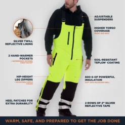 RefrigiWear Men’s Iron-Tuff Enhanced Visibility Insulated High Bib Overalls With Reflective Tape
