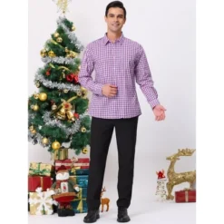Lars Amadeus Men’s Button Down Long Sleeves Gingham Plaid Dress Shirts
