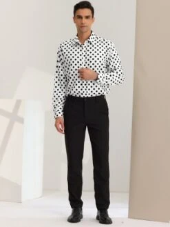 Lars Amadeus Men’s Button Down Long Sleeves Casual Polka Dots Print Shirts