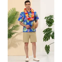 Lars Amadeus Men’s Hawaiian Shirt Short Sleeves Summer Patchwork Floral Leaf Shirts