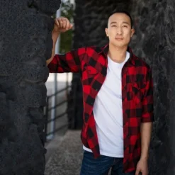 Burnside men’s modern fit yarn dyed legendary Red Buffalo Plaid flannel shirt. Long sleeve, point collar and two chest pockets with button flaps. Extra soft blend of 60% cotton/ 40% polyester.