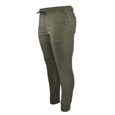 Burnside men’s stretch twill jogger pants. Slim fit 98% cotton/2% spandex and a drawstring waist and gathered elastic bottom.