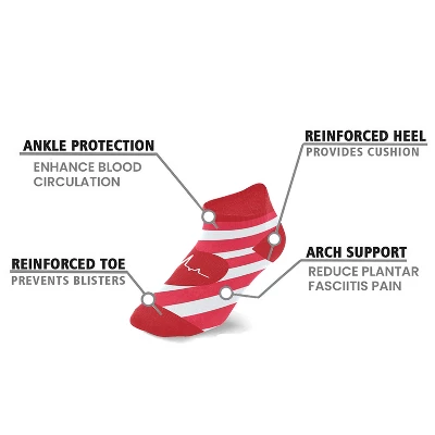 “Made of moisture-wicking and anti-bacterial materials, these ankle-length nurse design compression socks help ease the pain, soreness, and discomfortHighlightsUnisex ankle patterned Compression Socks (6-Pairs)Help relieve pain in the arches and heelsCan minimize pain from plantar fasciitisBoost blood circulationRecommended for people who are on foot for long hours and for sports and running.Moisture-wicking and anti-bacterial designMaterial: 94% Polyester, 3% Spandex and 3% Other FibersCare InstructionsTurn inside out before washingTumble-dry lowDo not ironMachine wash coldDo not bleachSizingSmall/medium: women’s shoe sizes 6.5–9.5, men’s shoe sizes 5–9.5Large/extra large: women’s shoe sizes 10–13.5, men’s shoe sizes 10–12”