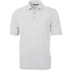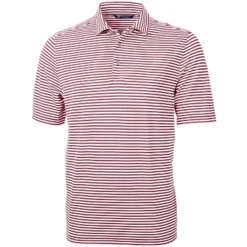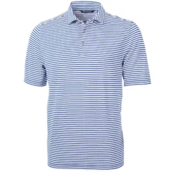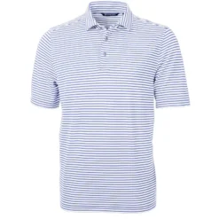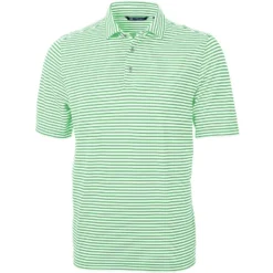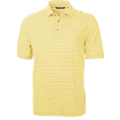The iconic Virtue Eco Pique Stripe is engineered for exceptional versatility, designed to be your favorite sustainable mens striped polo shirt for golf, the office, WFH, travel, recharging, and for a night out. High quality certified eco-friendly recycled polyester is blended with drytec polyester and elastane for stretch, a cooling effect, and UPF sun protection, resulting in a versatile, sustainable, and comfortable striped polo for you and the planet.