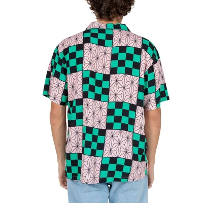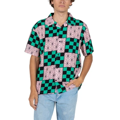 Celebrate your favorite anime series in style with this Demon Slayer woven top. The shirt features alternating squares with Tanjiro’s green and black checkered pattern and pink squares with the pattern on Nezuko’s robe. The shirt comes in a short sleeve button down woven top. Demon Slayer fans will love this comfy and stylish shirt.