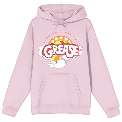 Find your inner T-Bird or Pink Lady with this Grease sweatshirt. The hoodie features red and white letters that spell out the movie’s logo while the sun and clouds appear below the image. A rainbow crosses above the logo. The sweatshirt comes in cradle pink with an adjustable hood and a large pouch pocket. Grease fans will love this comfy and cozy hoodie.