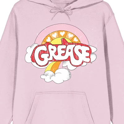 - CUSTOM DESIGN: Red and white letters spell out The Grease logo above the sun and clouds in the graphic design on this sweatshirt while a rainbow appears above the image. Fans of the Grease movie musical will love this fun custom design.