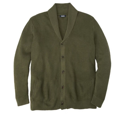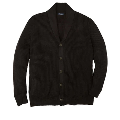 A plush shawl collar refines the classic shaker-stitch cardigan. Knit of supersoft yarns, it has a comfortable fit for the Big and Tall man.