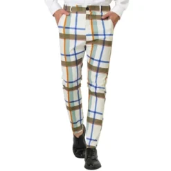 The eye-catching color block design makes you stand out from the crowd. The soft fabric allows for greater comfort, while stretch gives you more freedom to move. The plaid dress pants come with 2 hand pockets at the sides, which is very convenient to put your small item inside. Easy to match your shirts, T-shirts, polo shirts, or blazer for your business style. The versatile style is the reason you choose these classic plaid pants. You can not only wear them to work but also at prom, parties, or dating.