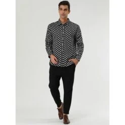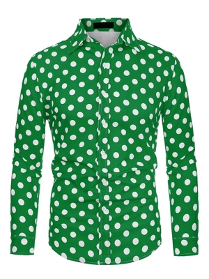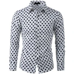 The polka-dot shirt is a weekend wardrobe essential. This shirt has a curved hem, both practical and versatile. With a cotton construction and fitted tailoring, this all-over oversized dot print button-down features a spread collar. Layer this shirt over a basic tee for a nod to laid-back summer style. Style with jeans and sneakers to build up a casual, smart look.