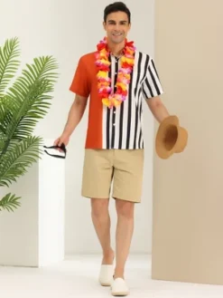 The summer beach shirt features a color block and stripe design, fashion, and stylish. Made of soft and breathable fabric, it gives you a comfortable wearing experience in summer. Wear the stripe beach shirt with casual pants or board shorts for a summer casual look. Available in multiple colors, a wardrobe necessity for summer.
