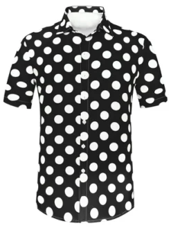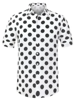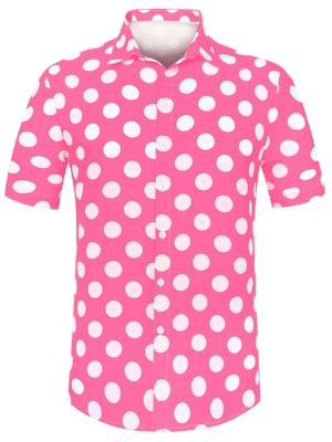 - Polka dots pattern design, regular fit, button closure, short sleeves, summer Hawaiian color block shirt