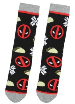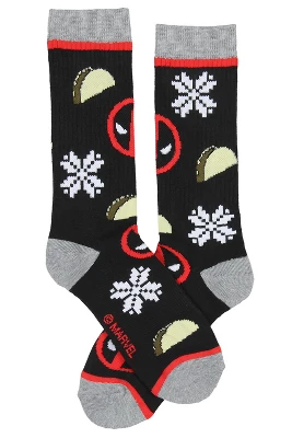 - FUN HOLIDAY THEMED PATTERNS – These Deadpool socks feature holiday-themed designs with a Santa Hat wearing Deadpool and snowflake, Chimichanga, and taco patterns.
