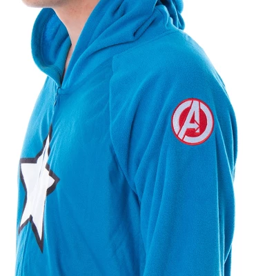 Marvel Comics is the worlds leading producer of comic books, comic films, and superhero merchandise. With incredible superhero teams, heroes, and villains, how could you not be a fan?!?! Captain America is one of those incredible superheroes that inspire us to be the best people we can be. This Captain America costume union suit features a classic blue color scheme with a front costume design that consists of a star, red and white stripes with a brown bar underneath to look like a belt, and red and brown lines on the front legs for Caps boots. Some of the other unique designs it features are an embroidered Avengers logo at each shoulder and a back with a large shield logo with embroidery as the outlines. The functional hood features a large “A” logo on front, embroidered Wing designs on each side, and eye holes. It has a full waist-to-neck zipper closure. These costume union suits are each made of an ultra-soft 100% microfleece polyester