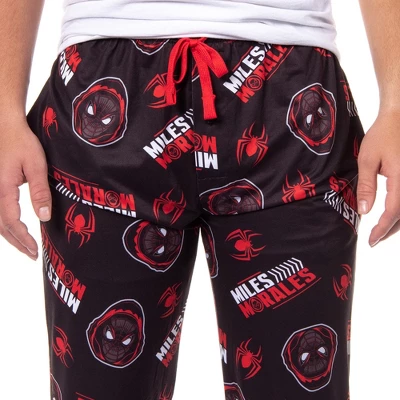 - EXTRA FEATURES – These Miles Morales lounge pants have 2 hand-deep pockets, a button-fly closure, and a drawstring closure at the elastic stretch waistband.