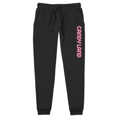 - Strut your stuff with these stylish new men’s joggers, perfect for getting cozy! Featuring the Candy Land logo in red and white candy cane stripes down one side.