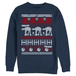 The traditional ugly Christmas sweater just got a galactic makeover to bring you the Star Wars Christmas Sweater Men’s Sweatshirt. Darth Vader, TIE fighters, AT-AT walkers, and more come together to create a holiday pattern on this durable graphic sweatshirt.