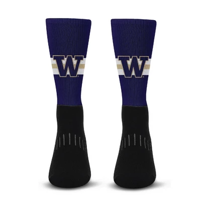 Tell everyone you’re a fan with these Brand-New Team Color Sublimated Logo Streak Crew socks. Featuring a shaped heel pocket for enhanced fit and Moisture Management keeps you cool and comfortable. Makes a perfect gift for the fan in your life. They are a fashionable way to show your team pride from head to toe. Fits Men’s Shoe size 10-13 Comfortably (Size Large). Officially licensed with long lasting team logos, and colors, that won’t let you down! Made with Sustainable Sourced Materials. Machine washable, tumble dry low.