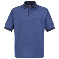 Looking great is no sweat. Give yourself a promotion with the comfort and upscale look of this short-sleeve knit twill. The stain-resistant, moisture management material is styled with a traditional rib-knit collar, spade style pocket, and tortoise shell buttons. With soil release, shrinkage control, and ability to handle industrial laundry, your look is the picture of staying cool under pressure.