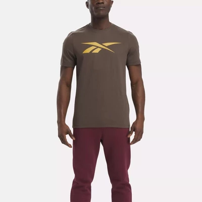 Wear your athletic pride on your sleeve. This men’s Reebok graphic tee puts your respect for sport on your chest for all to see. It has a slim fit for a stylish look. The soft cotton jersey is comfortable for all-day wear. Our cotton products are entirely sourced through sustainable cotton farming and are made with at least 50% Better Cotton.