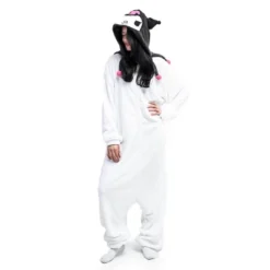 Transform into your favorite character with this officially licensed Hello Kitty & Friends Kuromi Kigurumi cosplay union suit! This cool cosplay suit is designed to replicate the charming Kuromi character, complete with an attached hood for an authentic look. Crafted from 100% polyester and coral fleece, it provides ultimate comfort and durability, making it perfect for cosplay events or cozy nights in. Available in a range of sizes from small to XXL, it ensures the perfect fit for everyone. To keep your Kuromi Kigurumi looking its best, simply machine wash cold with like colors and tumble dry low. Get ready to embrace the world of cosplay with this high-quality, officially licensed union suit that’s designed to delight Hello Kitty & Friends fans of all ages.