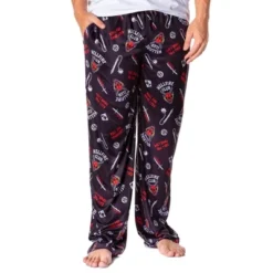 When a young boy vanishes, a small town uncovers a mystery involving secret experiments, terrifying supernatural forces, and one strange little girl with incredible powers. The “Hellfire Club” is a Dungeons & Dragons-oriented society of Hawkins High students headed by Eddie Munson. Many Hellfire members also played in Eddie’s band, Corroded Coffin, while members Dustin, Mike, and Lucas were also members of a different D&D party. Are you joining the most fantastic club in Hawkins High? These Hellfire Club pajama pants feature wonderful all-over designs celebrating the Dungeons and Dragons club. They also have a drawstring waist, button closure fly, and 2 hand-deep pockets. The pants themselves are made of a soft 95% polyester and 5% spandex fabric blend.