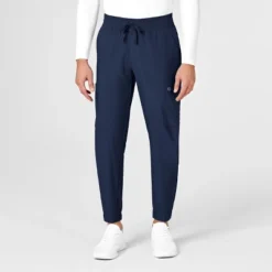 The Men’s Cargo Jogger Scrub Pant from the W123 collection is made with a 100% microfiber poly 4-way stretch fabric that synchronizes with your every movement, quick-dry wicking technology to pull moisture away for fresh cool temperature-regulated comfort. These comfortable jogger scrub pants feature a full elastic waist with drawstring and zip fly for ease and function. The two front pockets, two stylized cargo pockets with cell phone pocket and pen slot, and two back pockets with hook and loop closure keep you organized but not overloaded. The elastic cuff scrub pants bring style and comfort to your full shift and beyond.