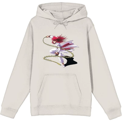 - ATTACHED HOOD – The Yu Yu Hakusho Yoko Kurama Men’s Graphic Hoodie in Sand includes an attached hood with drawstring to keep your head and neck warm in cold weather